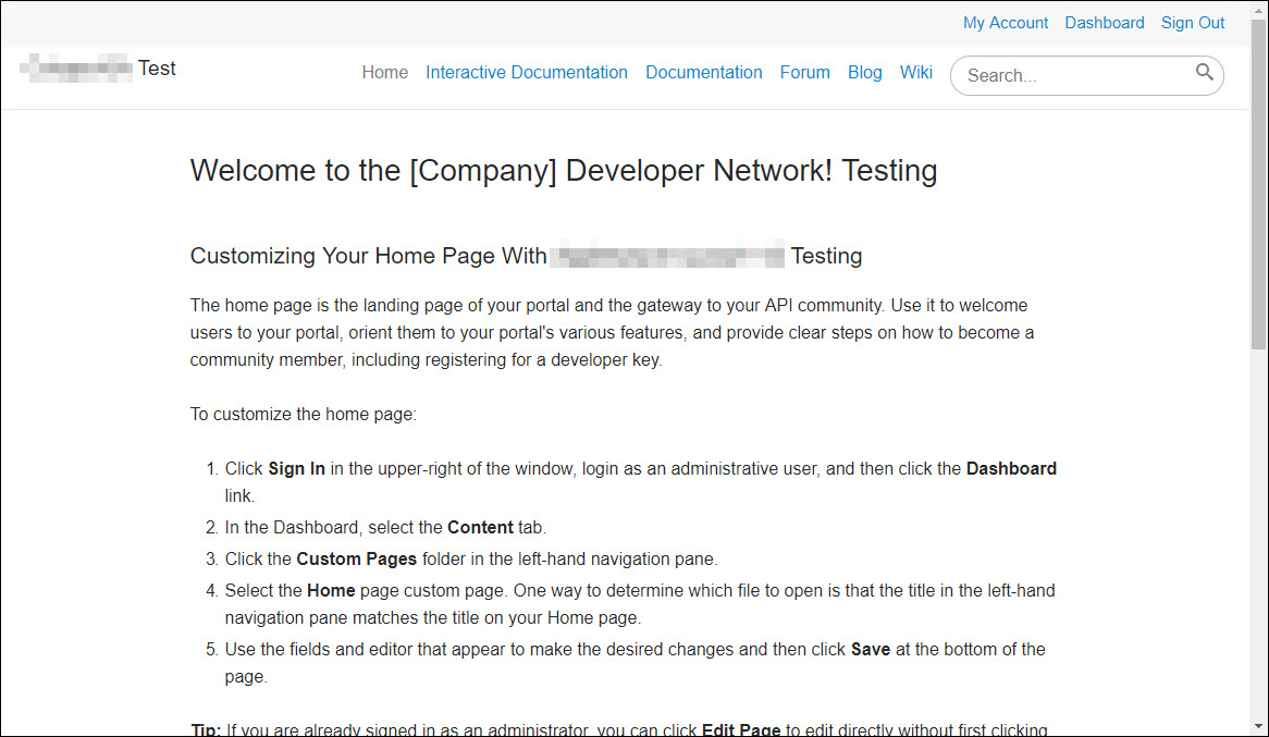 Example of External View of Developer Portal