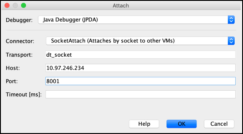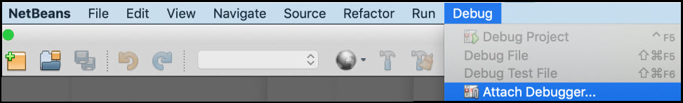 In the NetBeans window, click Debug menu, and then click Attach Debugger. The Attach dialog box opens.