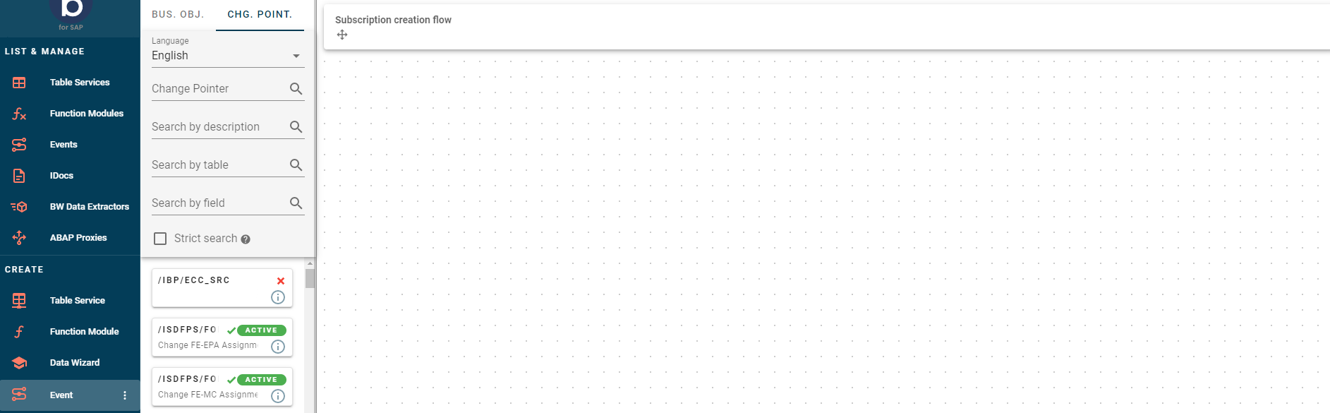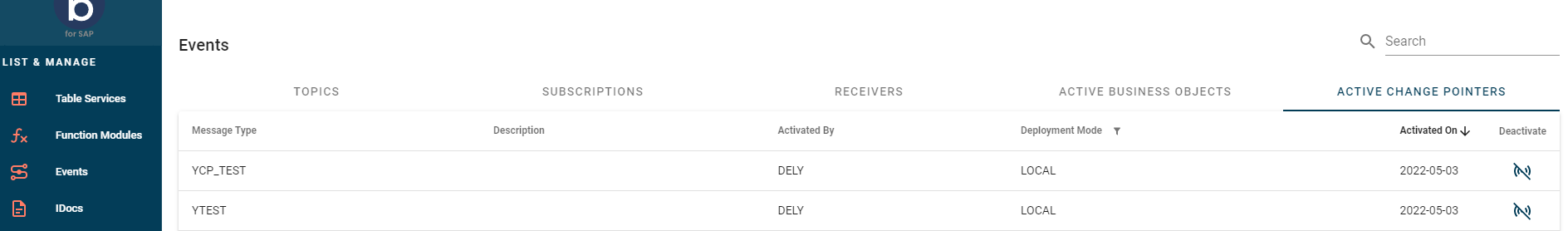 In the List and Manage section, you can view a list of all the Business Objects and Change Pointers that you have marked as relevant for Boomi for SAP and can process. You can filter these based on various parameters using the standard options available.
