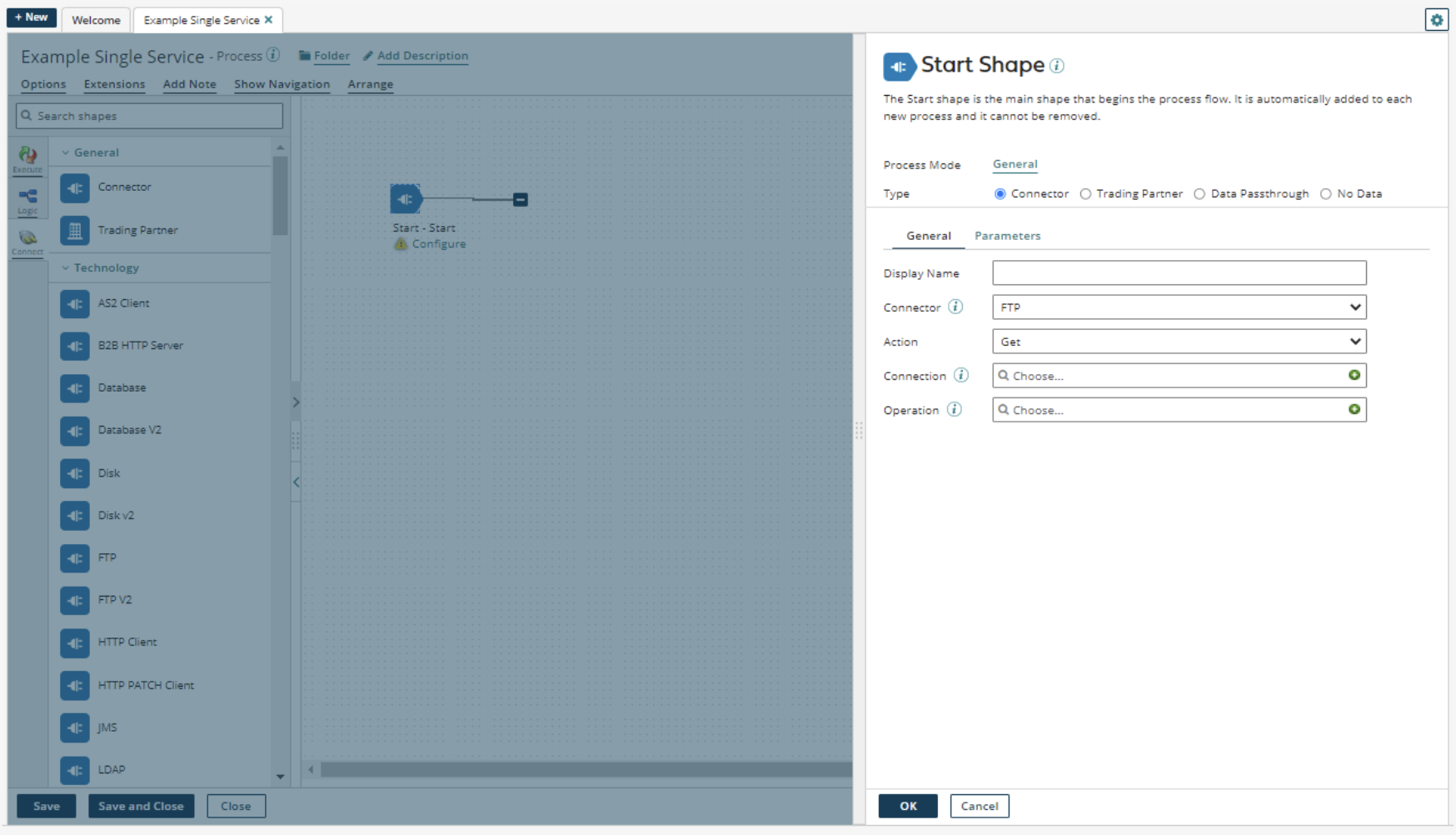 When you enter the Boomi platform, click the Process button in the canvas or create a new component in a folder, then fill out the different fields on the Start step page.