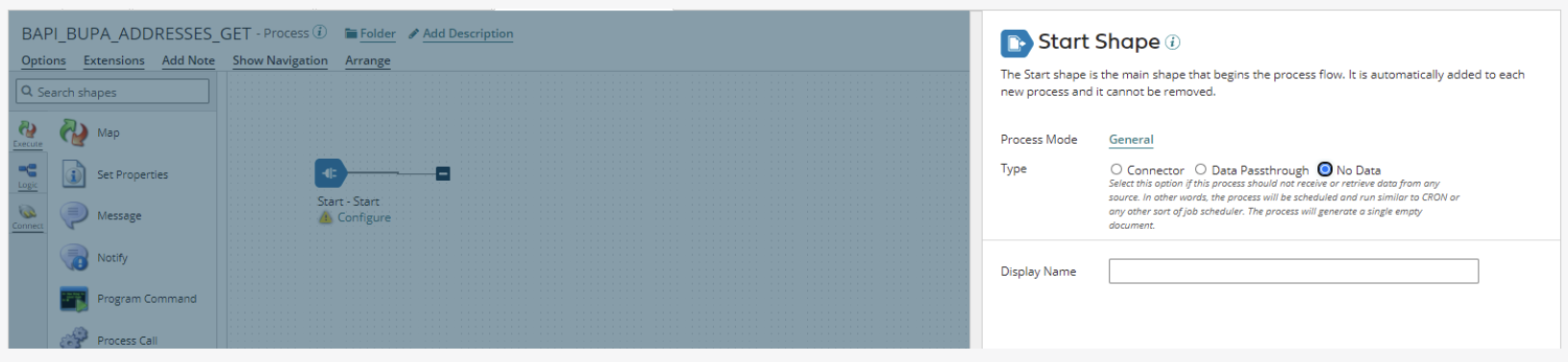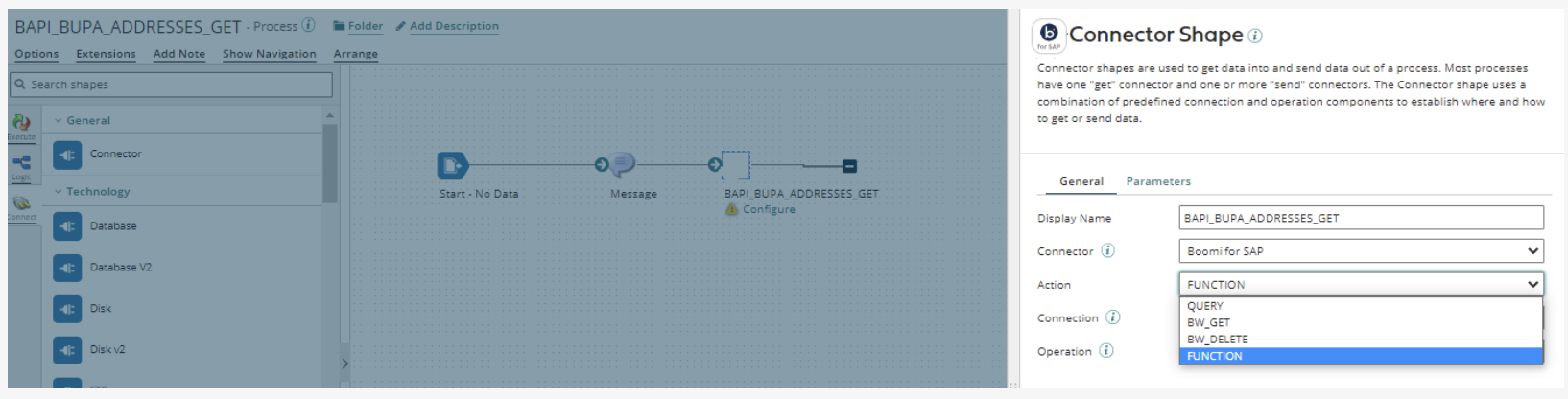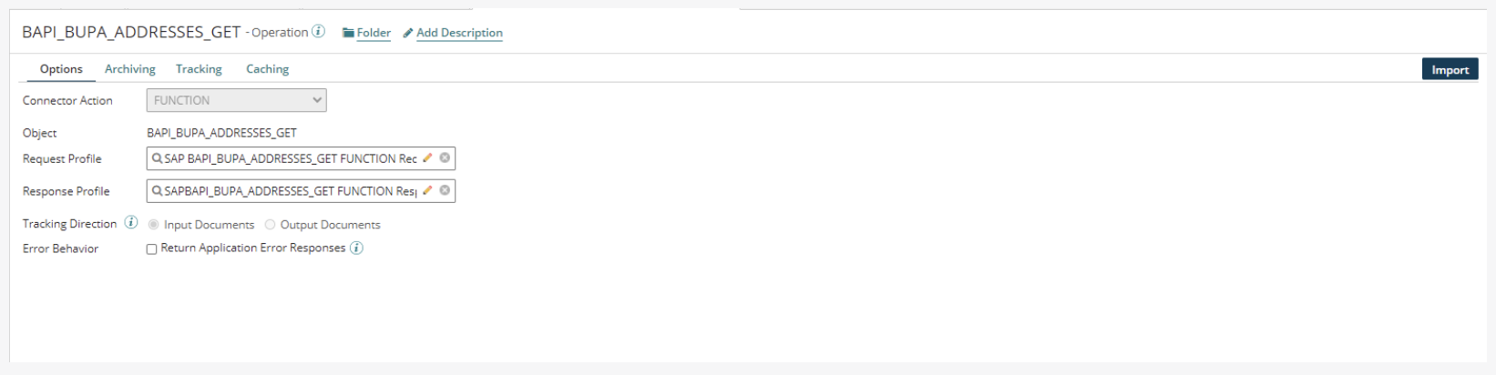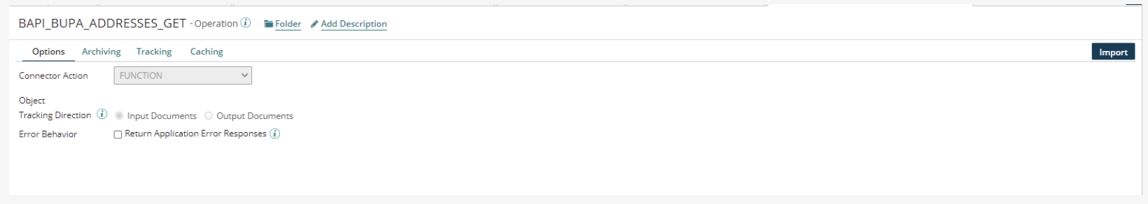 To quickly find the Operation in the future, add the name of the service you created in Boomi for SAP to the operation name in the upper left corner. In this example, we named the operation BAPI_BUPA_ADDRESSES_GET.