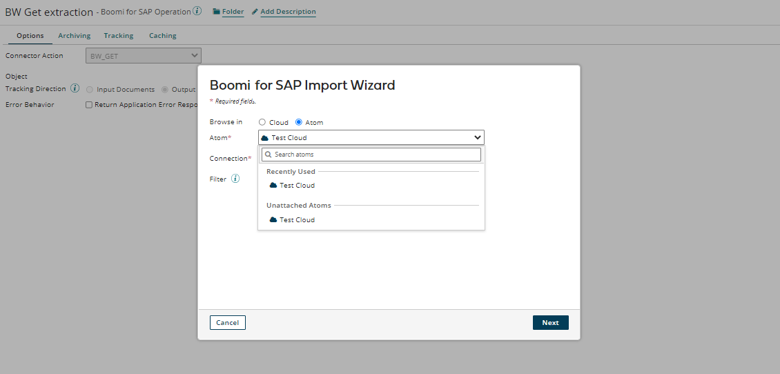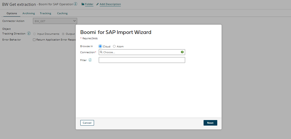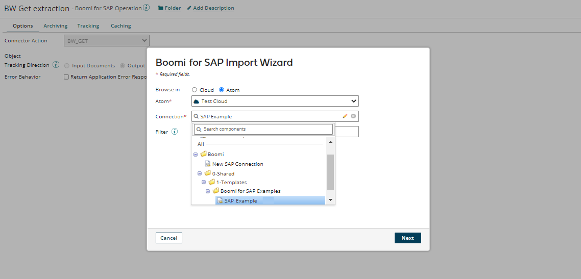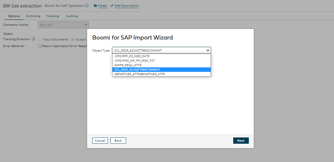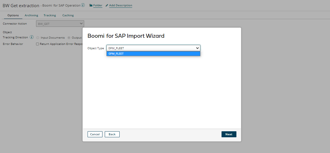 • To easily locate the operation in the future, replace BW Get extraction with the name of the extractor you previously created. For example, we named the operation Get extraction for 0PM_FLEET because it imports the extractor named 0PM_FLEET.