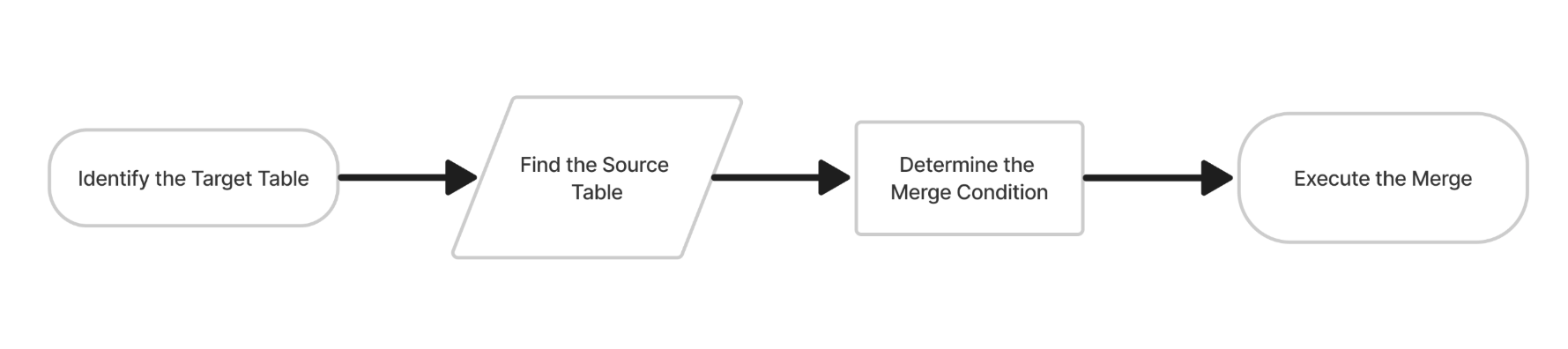 The Merge method applies updates and inserts directly into the Target table using a MERGE INTO statement. This method optimizes incremental updates by processing only modified record subsets.