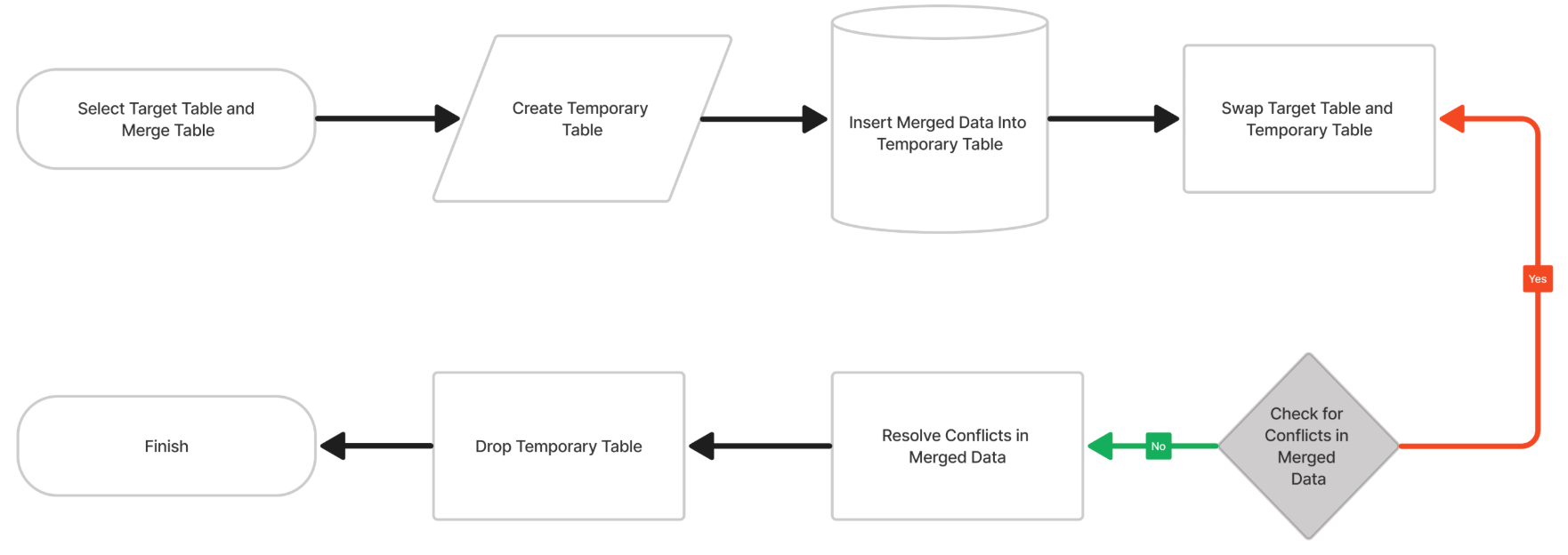- Switch Merge: The temporary table fully replaces the target table in a single step.