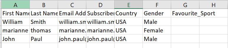 The list of subscribers and corresponding details are included in the CSV file. You can map the attributes in your .csv file to the attributes in your Marketing Cloud account either by Map by Header Row or Map by Ordinal. A valid CSV file must contain the attributes matching the attributes of the subscriber record in your SFMC account.