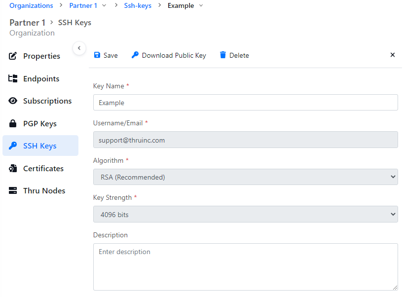 - Optional: Enter a description for the SSH Key.