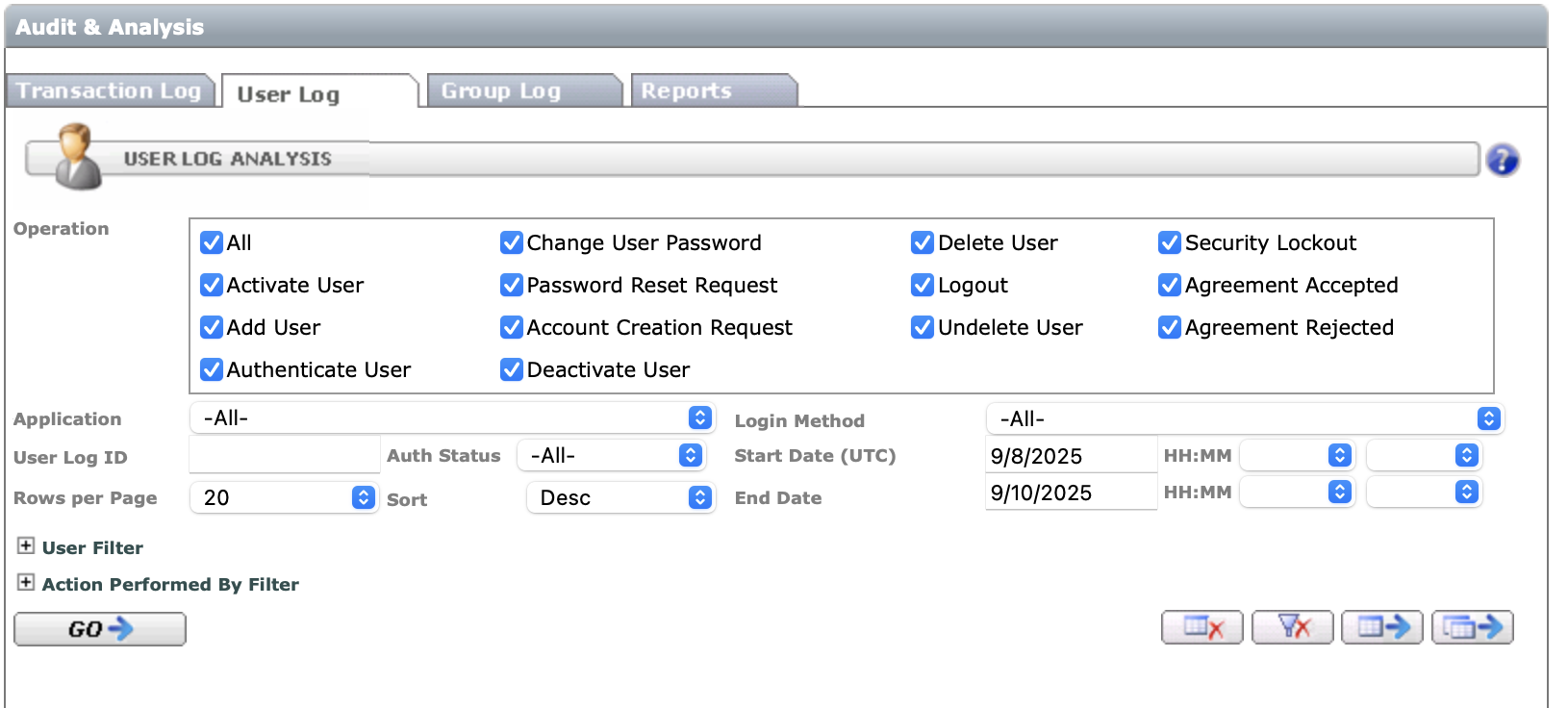 - Sort – Report result is sorted by User Log ID.