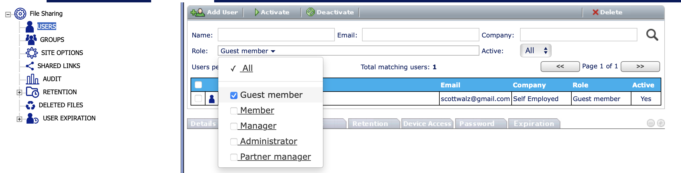 Administrators can manage guest members from the USER section of the Administrator dashboard.