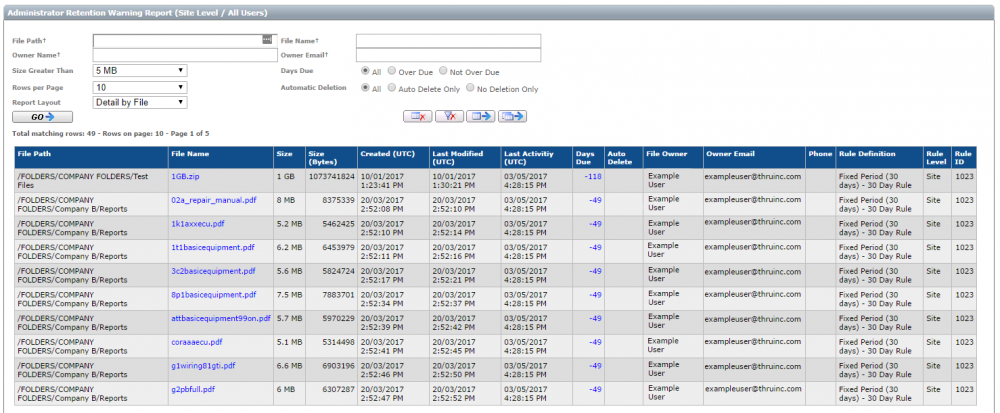 • You have the several filtering options to narrow down the list by focusing for example, file size, files that are overdue, or file path.
