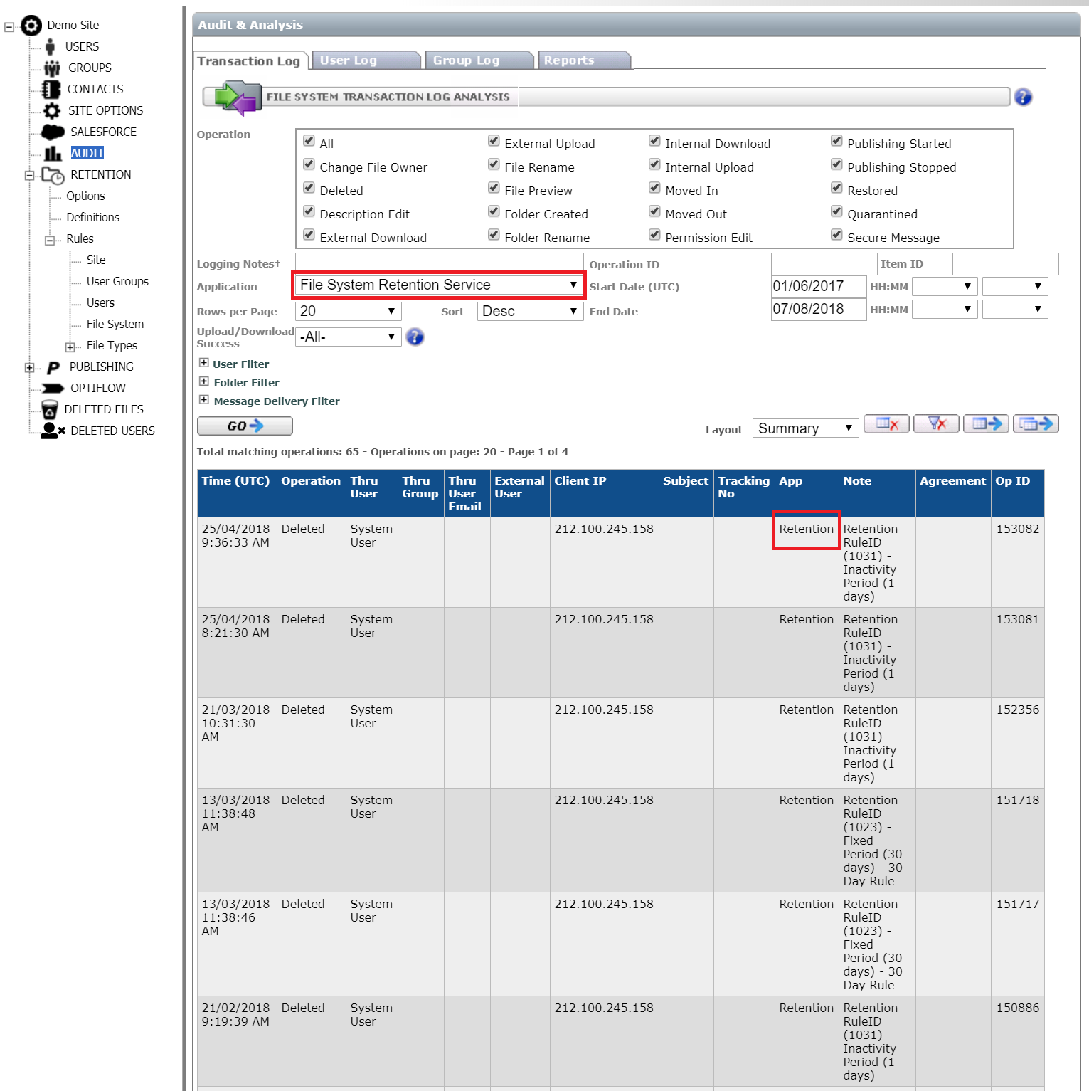 Retention and audit manager