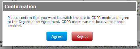 An administrator will need to enable this option and agree to this via the Activate GDPR site check box to meet EU GDPR requirements.